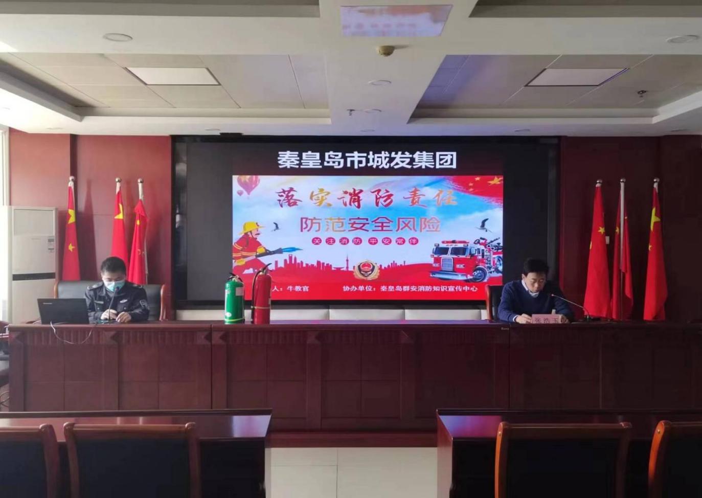 此次活動采取了“主會場+分會場”形式,集團公司全體員工和各下屬單位主要負責人、安全員在集團主會場參加培訓,各下屬單位設(shè)置分會場實時收聽收看。會議邀請秦皇島市群安消防知識宣講中心牛教官對“消防安全知識”作專題培訓,集團黨委委員、副總經(jīng)理張浩玉主持會議。